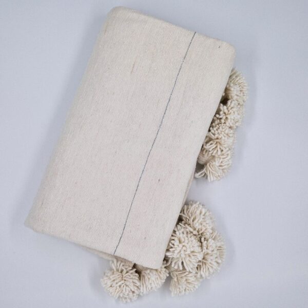 White Pom poms Blanket with Silver Lines