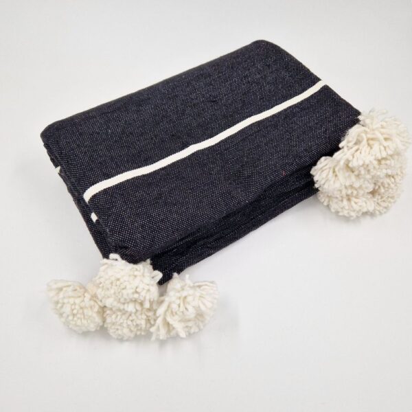 Couverture à Pompons Noire et Blanc Faite à la Main
