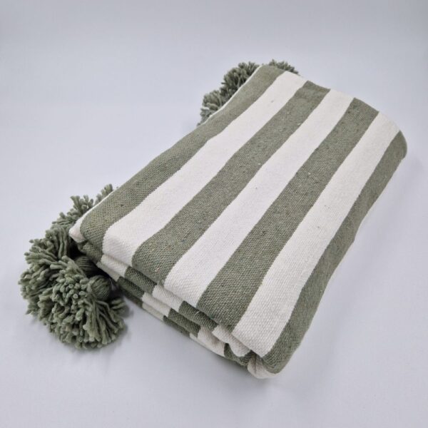 Couverture Zébrée Verte et Blanche à Pompons
