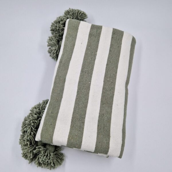 Couverture Zébrée Verte et Blanche à Pompons