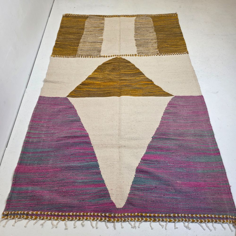 Ces tapis tissés à la main présentent des motifs distinctifs, généralement géométriques, et intègrent souvent un mélange de losanges, de triangles et d'autres formes abstraites ainsi que des symboles berbères. Les tapis Zanafi sont fabriqués à l'aide de techniques de tissage berbères traditionnelles et de matériaux naturels, tels que de la laine de haute qualité provenant de moutons locaux. En outre, ces tapis ont souvent un design minimaliste et symétrique, ce qui leur permet de s'adapter à différents styles de décoration intérieure.