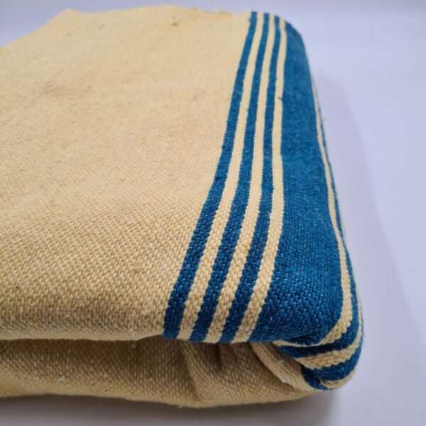 Kreminė Kukurūzų Pom Poms Lovatiesė su Mėlynomis Juostelėmis