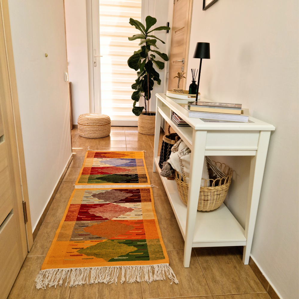 Woven from 100% premium sheep wool, this flat-woven Moroccan rug is lightweight yet durable, offering a smooth texture underfoot. Its understated design makes it ideal for modern, minimalist, bohemian, or classic interiors, whether styled as a hallway runner, bedroom rug, or elegant accent piece.