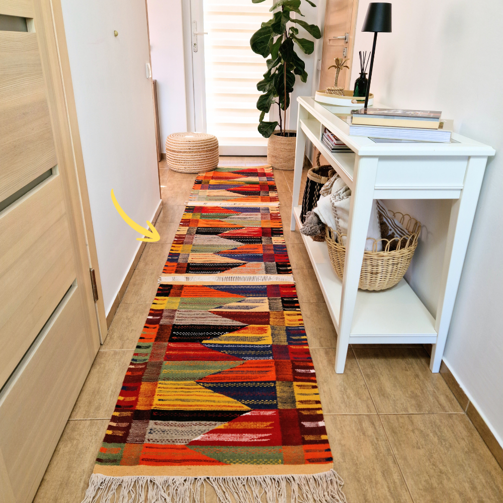 Woven from 100% premium sheep wool, this flat-woven Moroccan rug is lightweight yet durable, offering a smooth texture underfoot. Its understated design makes it ideal for modern, minimalist, bohemian, or classic interiors, whether styled as a hallway runner, bedroom rug, or elegant accent piece.