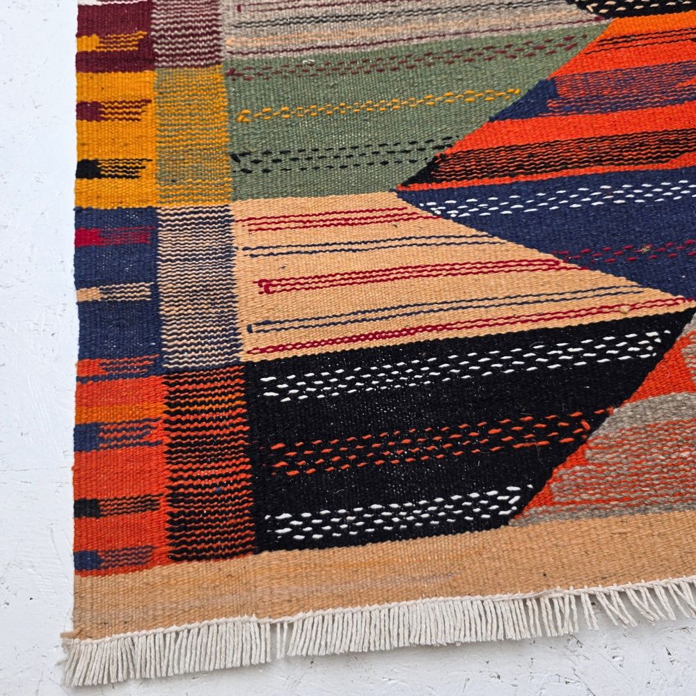 Color your home interior with an authentic Akhnif Moroccan rug, handwoven in the Middle Atlas Mountains by skilled Berber artisans. Known for their refined flatweave and minimalist elegance, Akhnif rugs embody the beauty of Moroccan craftsmanship and quiet luxury.