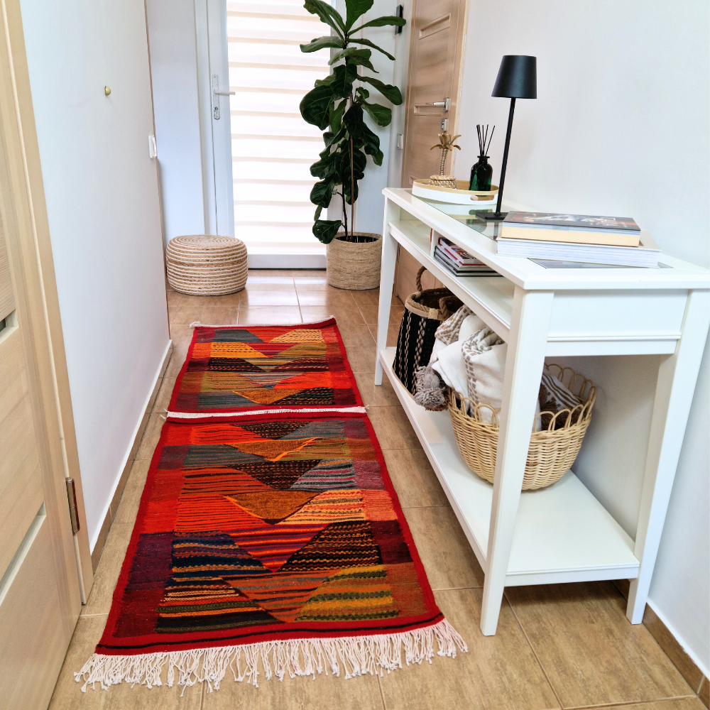 Woven from 100% premium sheep wool, this flatwoven Moroccan rug is lightweight yet durable, offering a smooth texture underfoot. Its understated design makes it ideal for modern, minimalist, bohemian, or classic interiors, whether styled as a hallway runner, bedroom rug, or elegant accent piece.